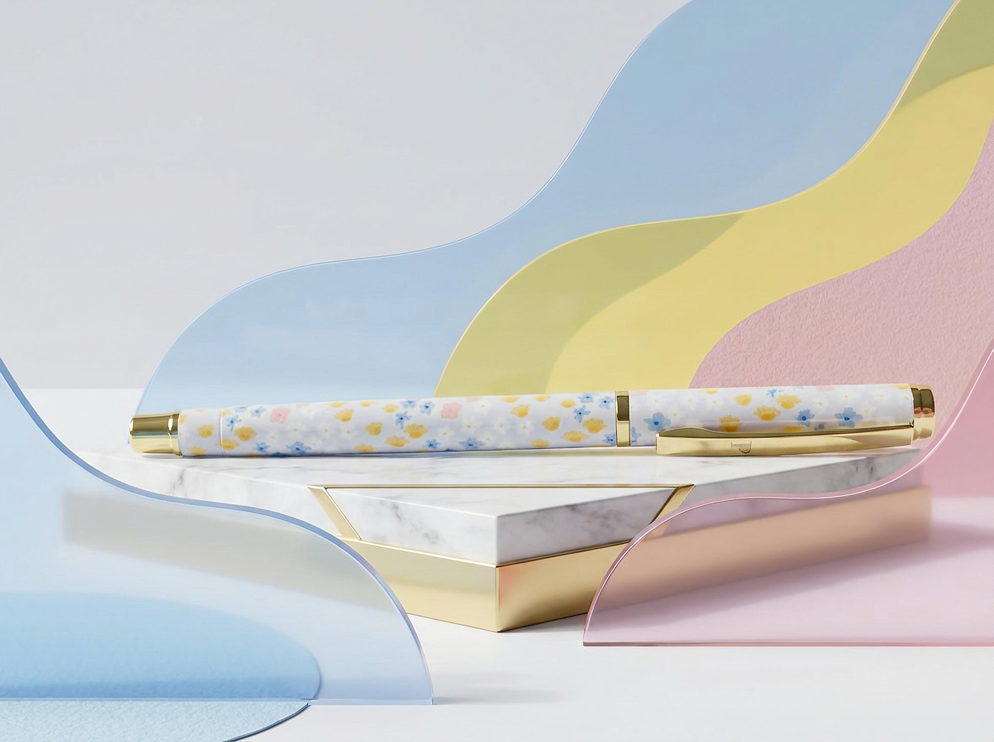 העיצוב הפרחוני העדין משתלב עם אלמנטים מתכתיים אלגנטיים, ויוצר עט שהוא גם פרקטי וגם יפה
